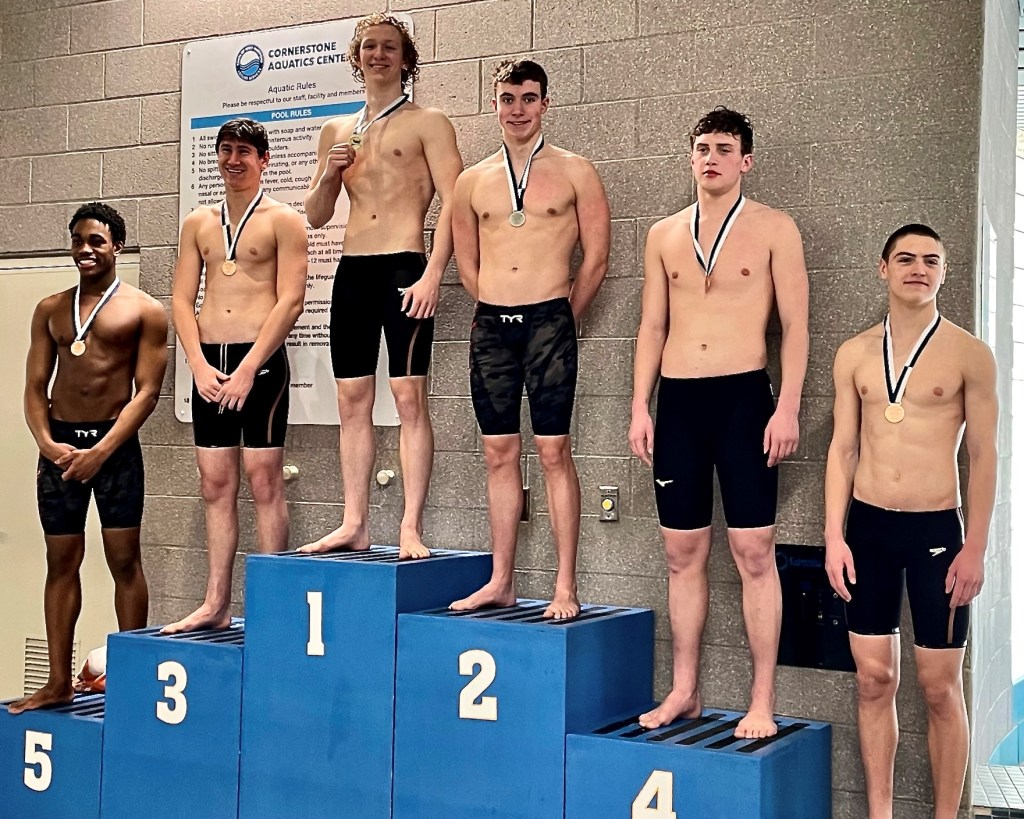 In the 50-yard freestyle finals, Barrett placed second in 21.37 seconds. Nathaniel Taft (Fairfield co-op) earned the first-place medal (21.06). Seniors Charles Kosinski and Evan Belmont were seventh and ninth respectively, for the Cardinals in the 50 freestyle.