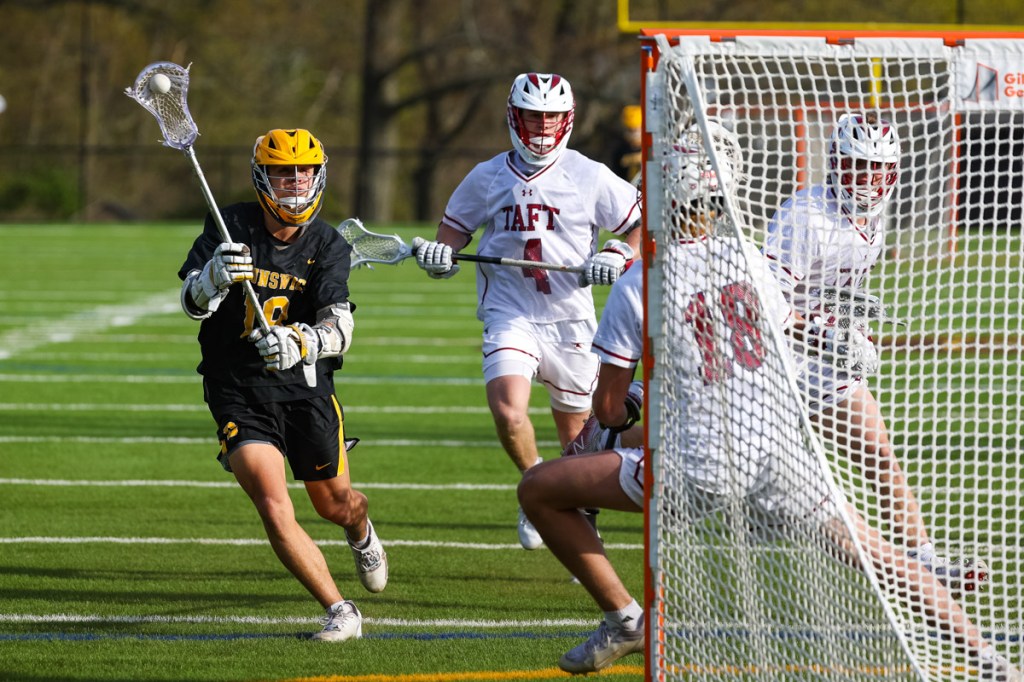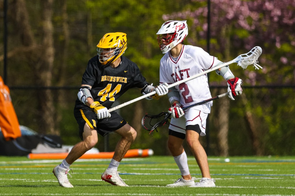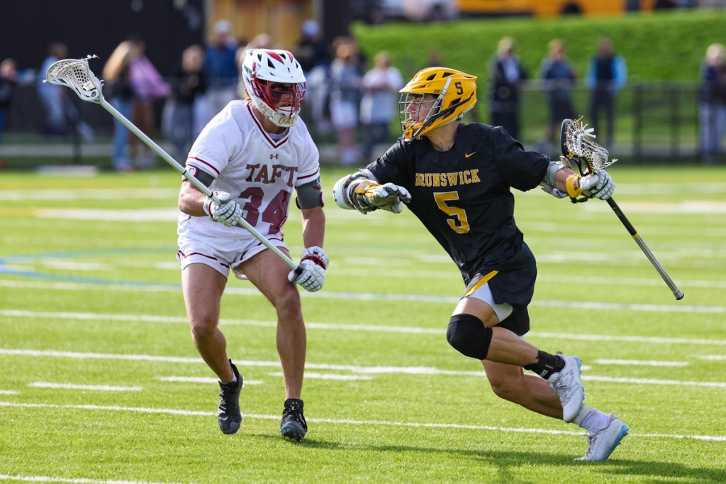 Photo by Rob Rasmussen: Brunswick renewed its lacrosse rivalry with Taft School on April 19, 2023.