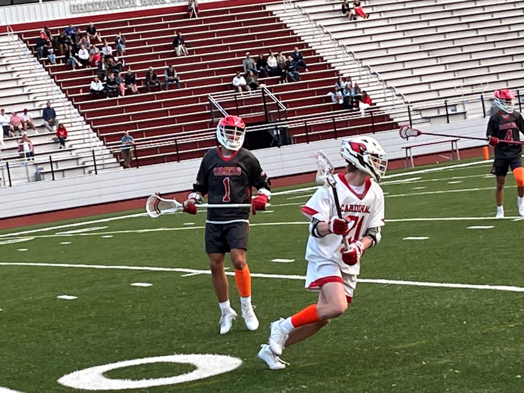 Senior attack Brian Collins scored three goals to pace Greenwich’s offense. Sophomore attack Mikey Brescia had one goal, as did sophomore midfielder Colin Zeller for the Cardinals.