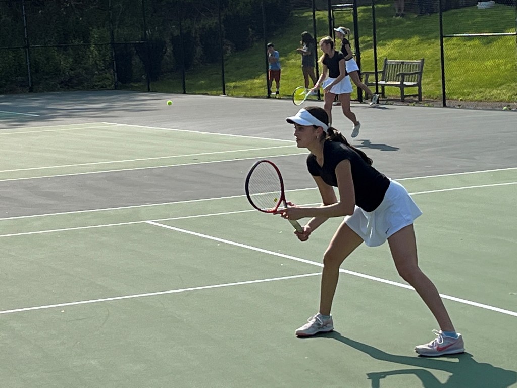 At second doubles, GA’s Val Cuccolo and Mia Jones played a very tight, competitive match against Hopkins’ Kiersten Brennan/Rosie Shen. The Hopkins duo edged Cuccolo/Jones, 5-7, 6-4, 10-6.
