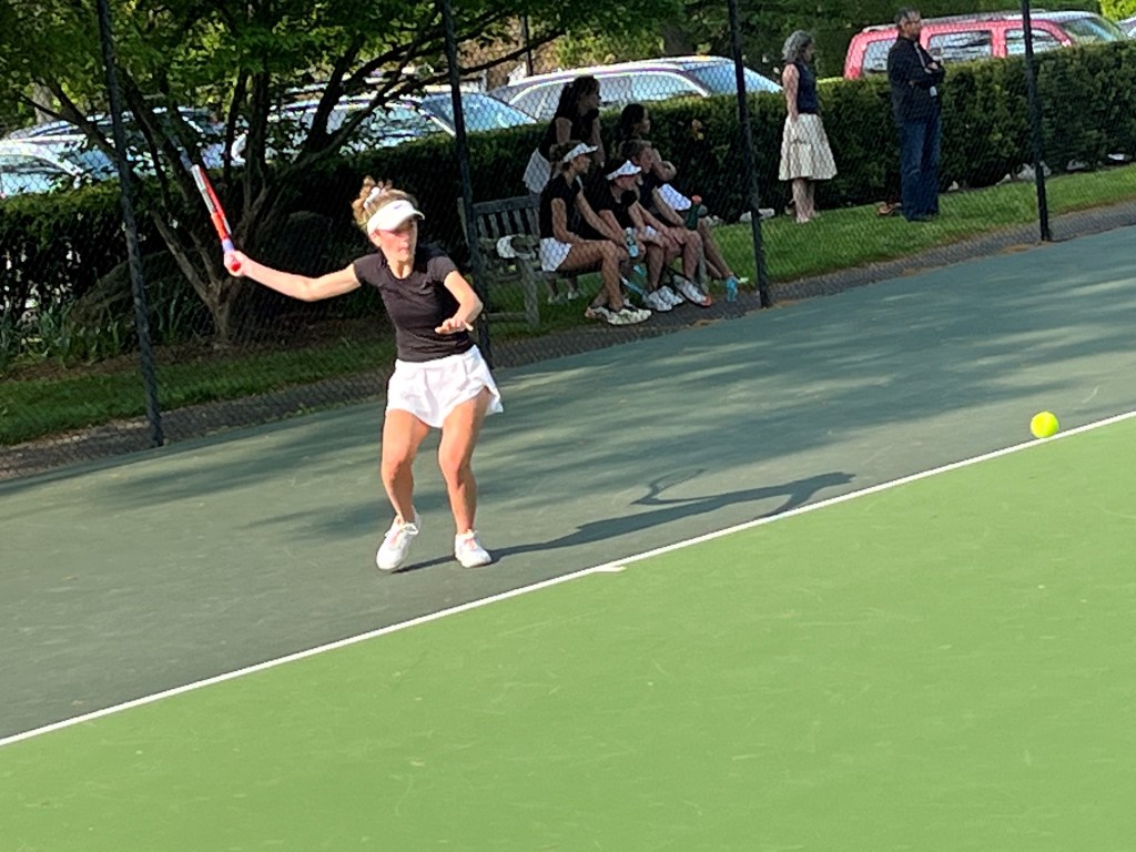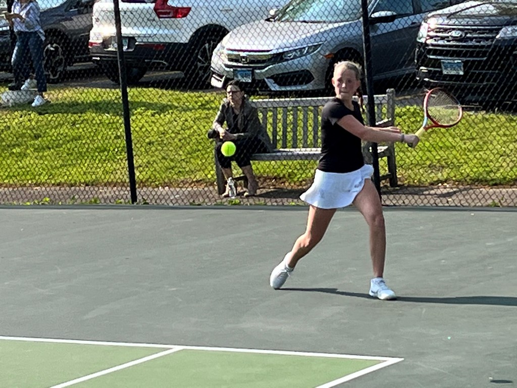 At third singles, sophomore Emily Sherman is also unbeaten for Greenwich Academy. Sherman sports a 13-0 record after defeating Hopkins’ Leva Strickland, 6-1, 6-3.