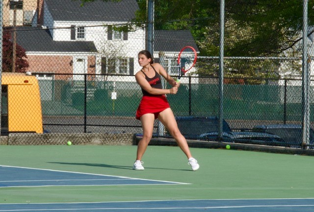 Senior Julia Tamis and junior Emily Weinstein added another win to their record No. 1 doubles for GHS, defeating Ava Lesser/Liz Brown, 6-0, retired. Sophomore Yume Inagawa and freshman Caitlin Mahoney teamed up for a 6-0, 6-2 win at second doubles, extending their winning streak.