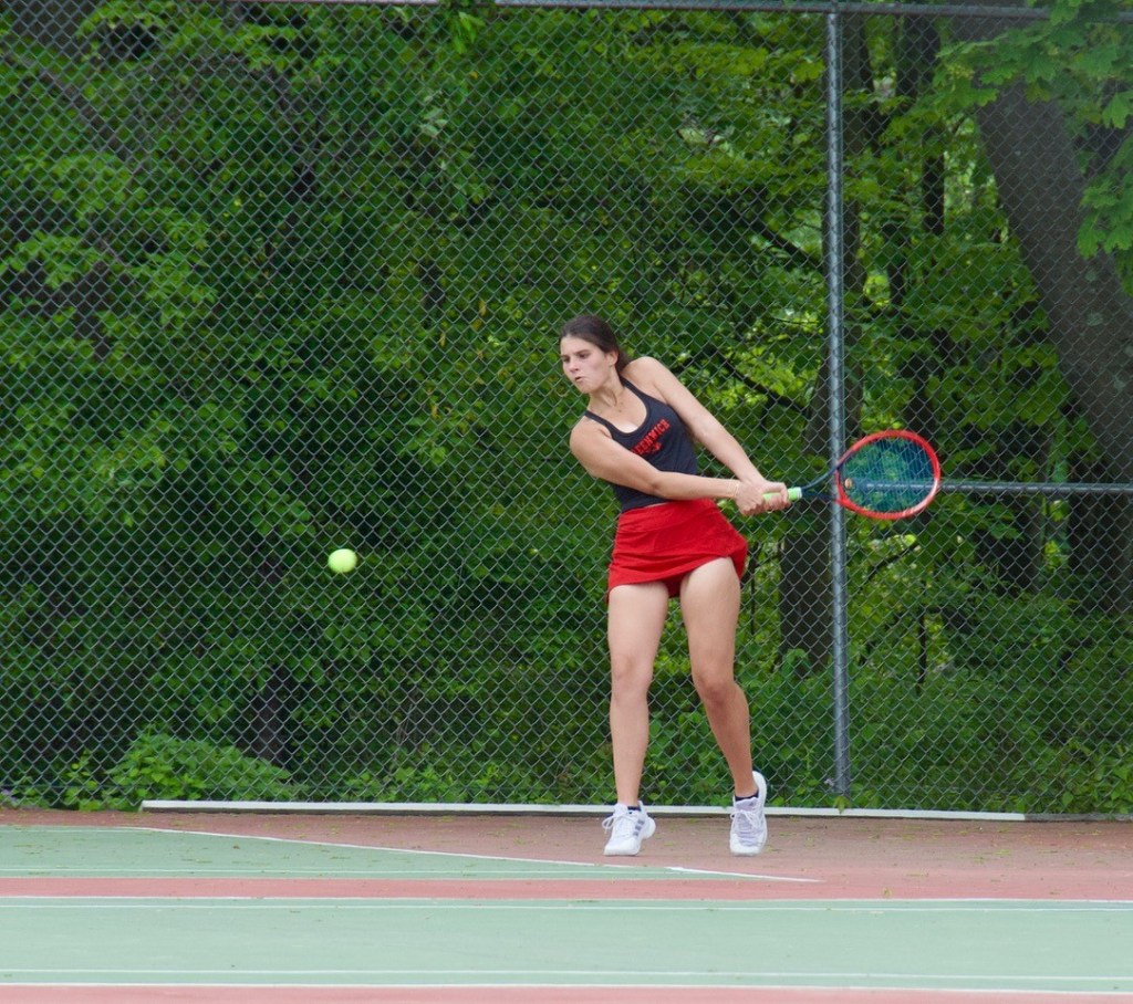 Ivanna Diez de Bonilla improved her record to 17-0 on season, registering a 6-1, 6-1 triumph over Westhill’s Sophia Alexander at the No. 2 singles spot.