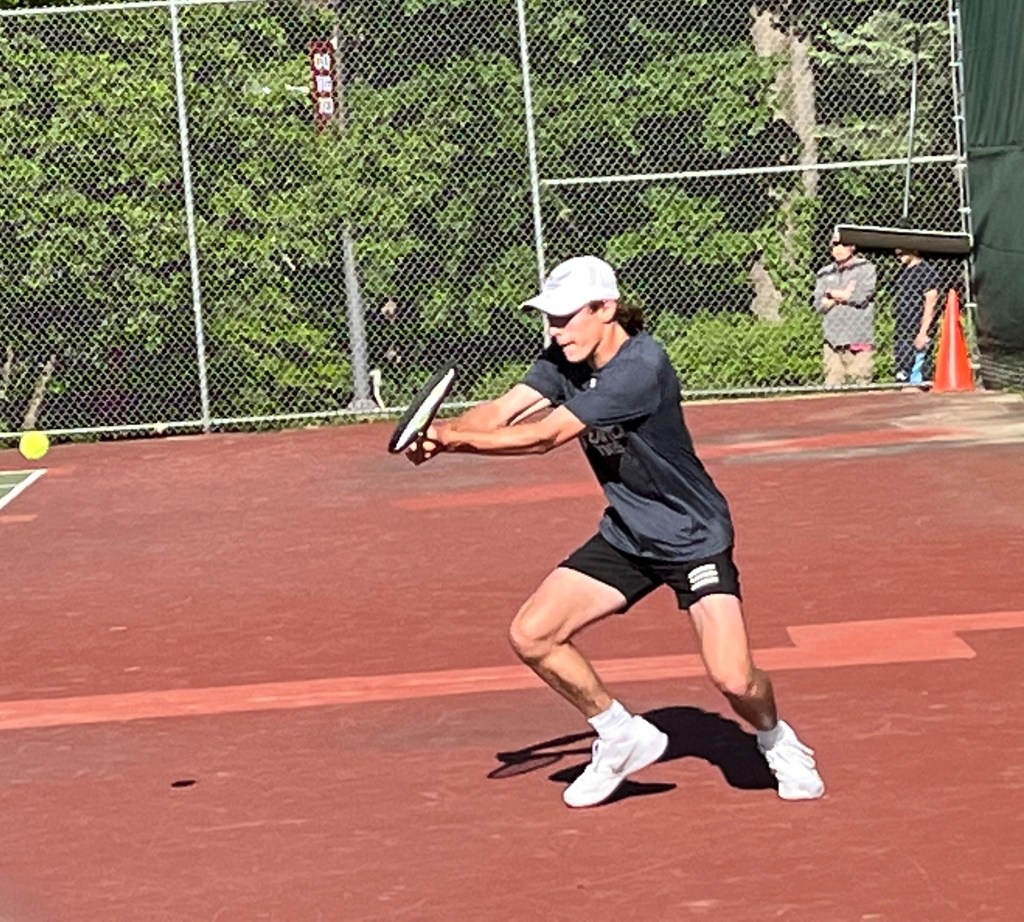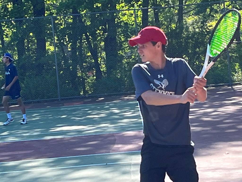 Greenwich senior captain Dylan Atkinson was finished with his semifinal-round match first against Staples. Atkinson won his match at first singles, 6-0, 6-0, using his strong serve and impressive groundstrokes to his advantage.