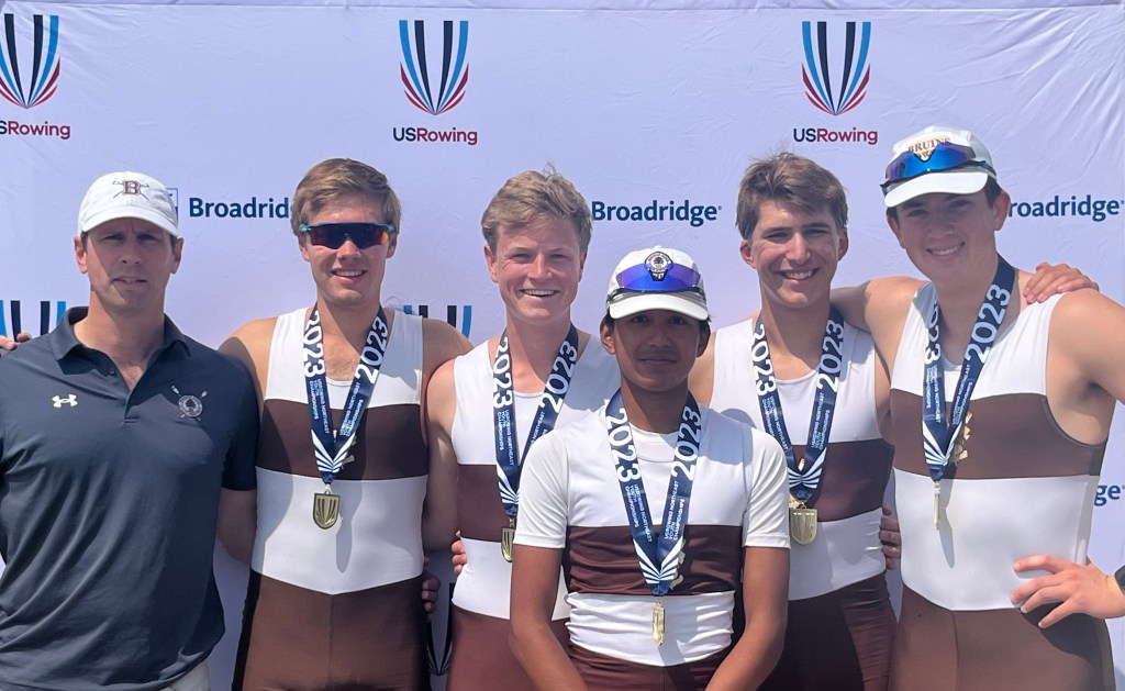 Members of Brunswick School’s crew team came home with gold medals from the ultra-competitive USRowing Northeast Youth Championships.