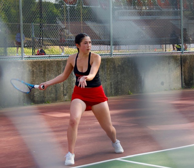 Zhang posted a 6-0, 6-0 win against Greenwich senior Ivanna Diez de Bonilla at first singles, Donnelly defeated GHS freshman Shining Sun at No. 2, 6-1, 6-1 and Wang was a 6-3, 6-1 winner against Cardinals junior Lilly Foley at No. 3.