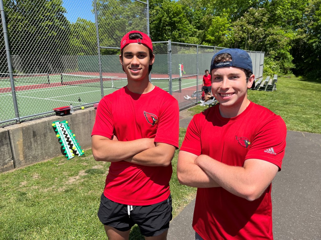 First doubles today saw seniors Cai Jain and Nick O’Brien add another perfect performance to their ledger. The Cardinals duo swept Seb Mardales and Azaan Siddigy of East Hartford, 6-0, 6-1 at first doubles – a spot they have excelled out throughout the season.
