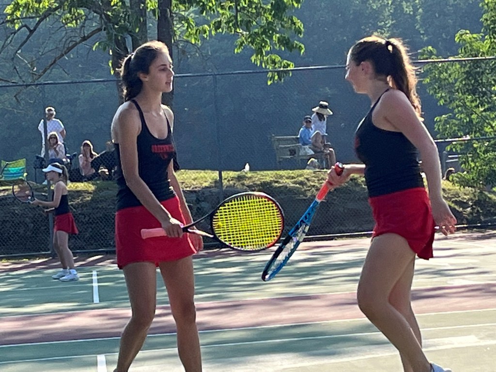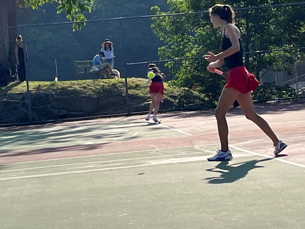 In doubles action, the Cards continued to flourish. Senior Julia Tamis and Emily Weinstein displayed the chemistry that has made them tough to top all season. They took a 6-1, 6-2 decision against their Glastonbury foes, dictating the majority of the match’s points.