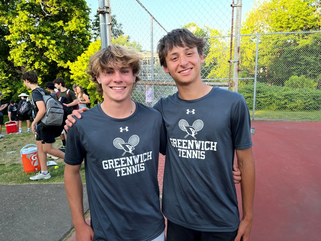 Darien received a victory at second singles from senior Teddy Callery, who defeated GHS freshman Volodymyr Dombrovskyi, 6-1, 6-1 and senior Kyle Patrick, who got past Cardinals senior David Karetsky, in a well-played match at third singles, 6-4, 6-4.