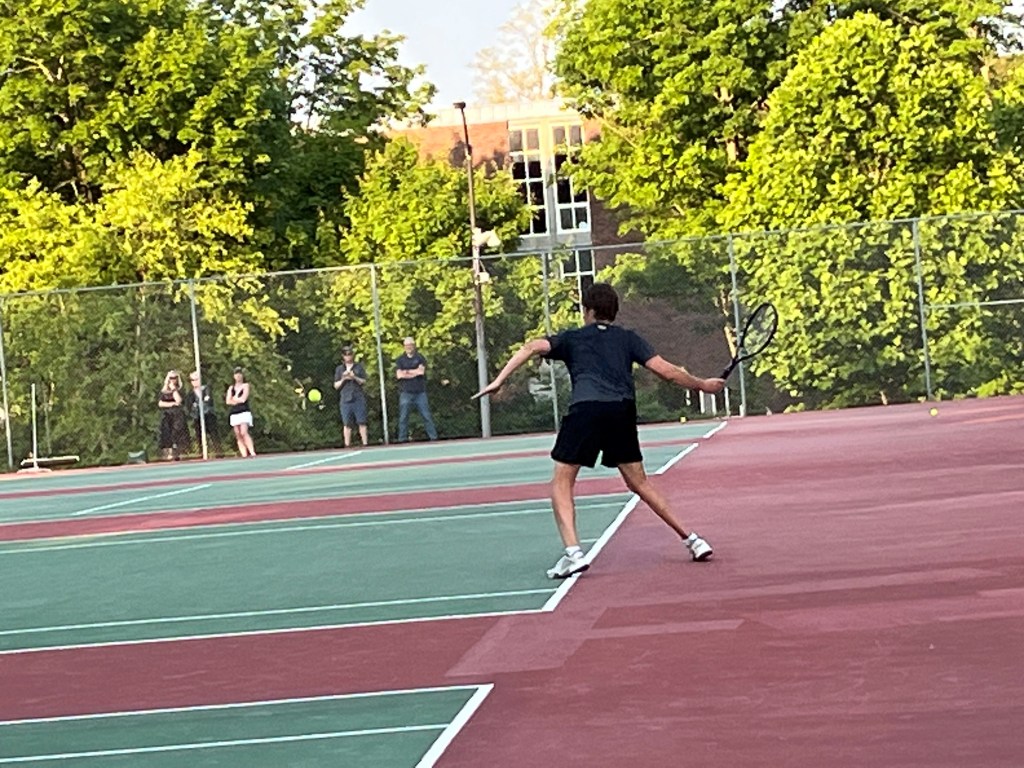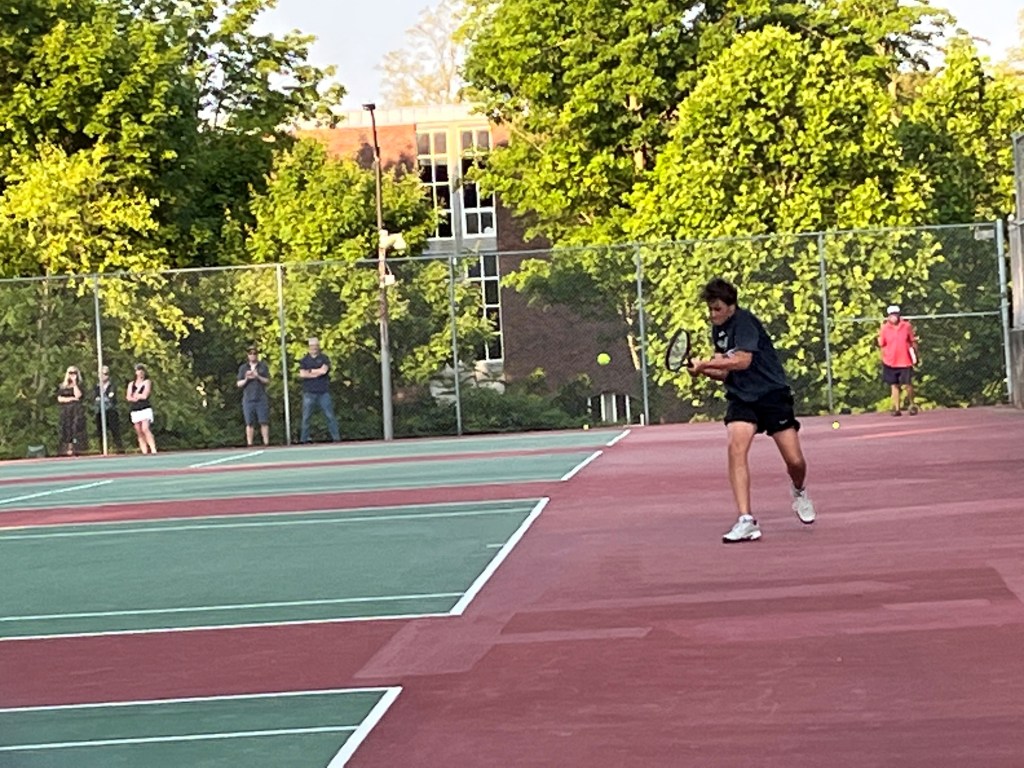 Darien’s doubles win came at No. 1, where junior Will Donnelly and Aidan White edged Greenwich seniors Cai Jain and Nick O’Brien in a tough three-setter, 4-6, 6-3, 6-4. The win tied the match at 3-3, setting the scene for the No. 4 singles matchup with an appearance in the finals at stake.