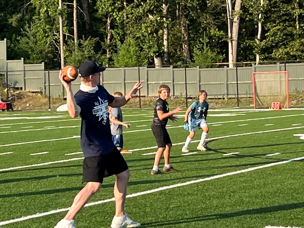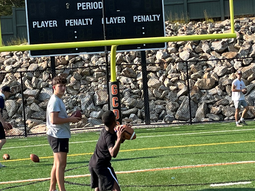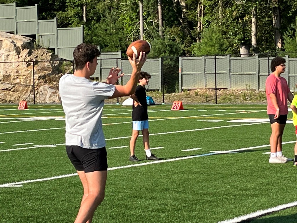 The summer football tradition continued at Greenwich Country Day School this week, as an enthusiastic group of young athletes developed their skills in preparation for the upcoming season with a group of experienced coaches, including former NFL quarterback Matt Simms.