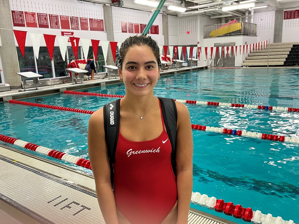 Heading into Friday’s home meet against Westhill/Stamford, Greenwich had a 4-0 record, while already earning significant statement victories. Wednesday, defeated defending FCIAC, Class LL and State Open champion Ridgefield, 97-87, winning eight of the 12 events, while producing numerous other stellar performances.