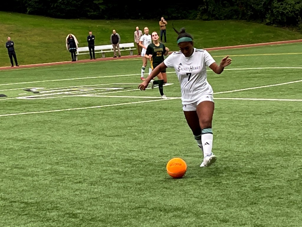 Freshman forward Clare Greisen hit the cross bar with a free kick for Sacred Heart early in the second half and Tejpaul made a save off a well-placed header by Bacigalupo in the 57th minute.