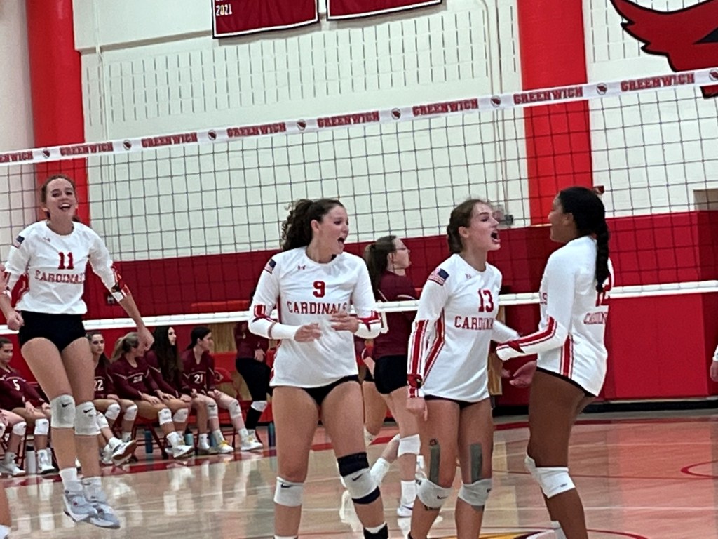 Hayley Dionis posted 17 digs and one ace, while Sarah Bernann kept the offense flowing with 39 assists, six digs, three service points and one block for the Cardinals against the Wreckers. Alina Sarkissian had 16 kills, four blocks and two digs, while Skylar Wilson tallied 11 digs and three service points for Greenwich, which sports an 11-2 record for the season.