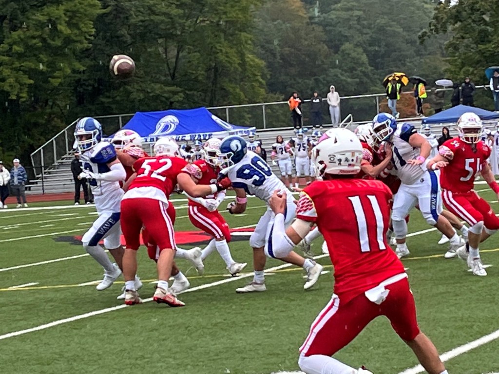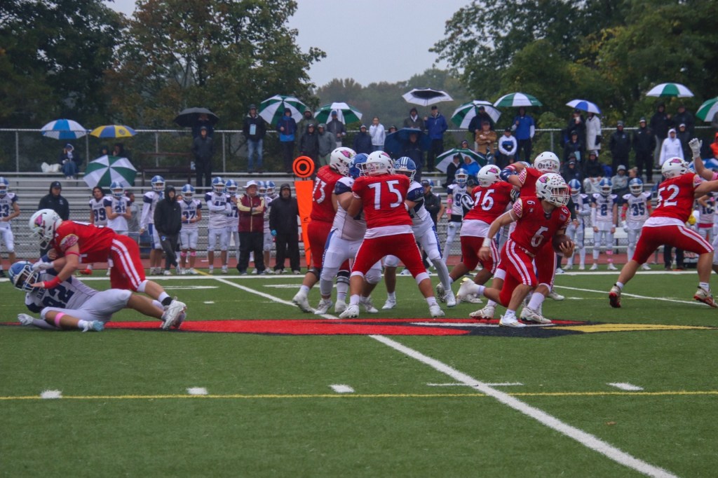Greenwich’s offensive linemen – Peter Vomvolakis, David Virella, Nicholas Granitto and Dylan Brehm – once again excelled. Ian Kim had several solid runs out of the backfield and a key reception for Greenwich.
