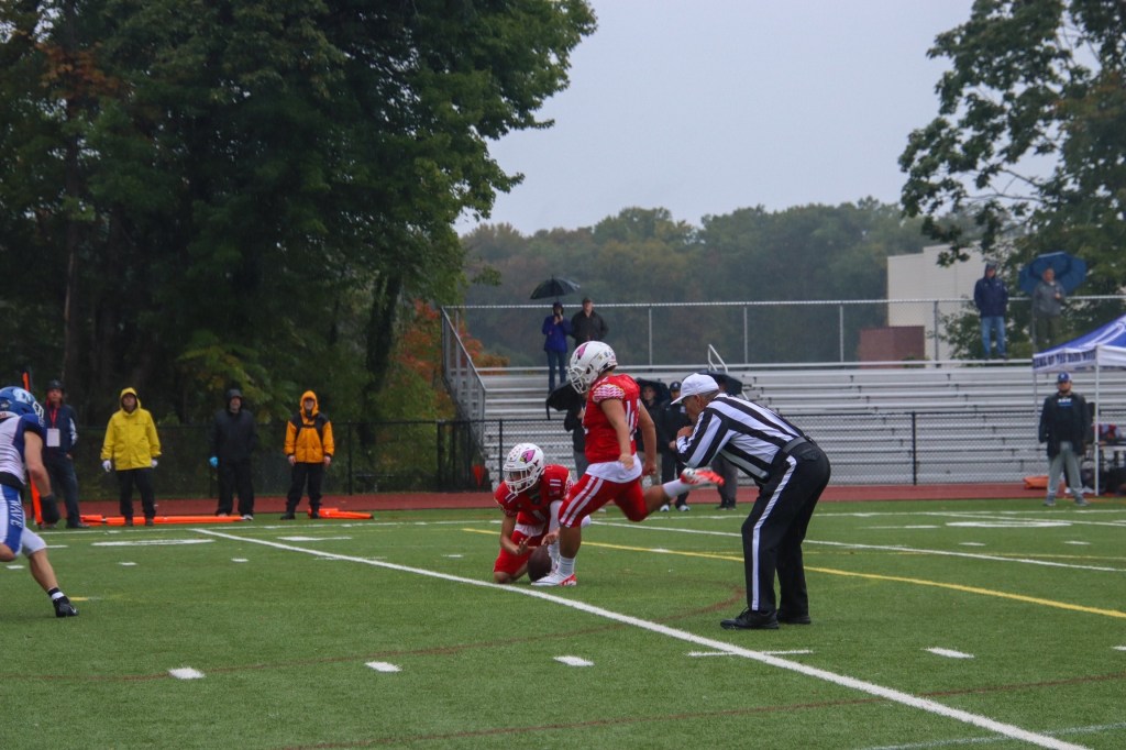 Ravina kicked a 32-yard field goal, giving Greenwich a 23-7 lead with 5:32 left in the third quarter. The defensive unit stepped up again for Greenwich on the ensuing possession. Sophomore cornerback Noah Park intercepted a pass from Rolapp. On the next play, George Vomvolakis took Grillo’s handoff and dashed 65 yards for a touchdown at the 4:38 mark of the third quarter.