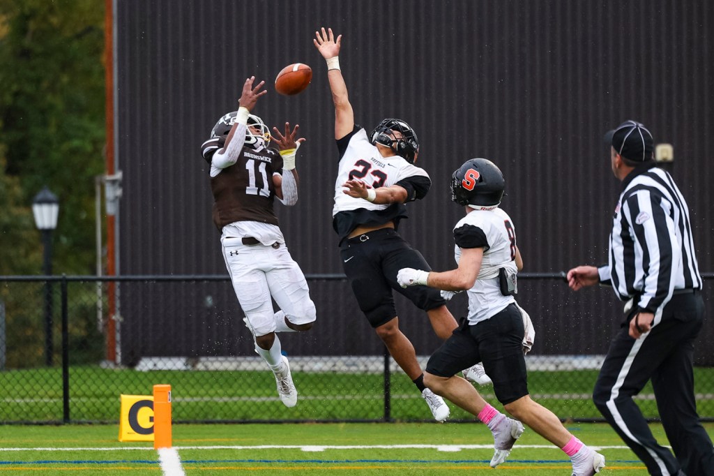 Senior co-captain Tommy Pope registered eight total tackles and intercepted a pass. Junior co-captain E.J. Perez sacked Suffield’s quarterback three times and senior George Fugelsang recovered two fumbles to highlight Brunswick’s highly effective defensive effort.