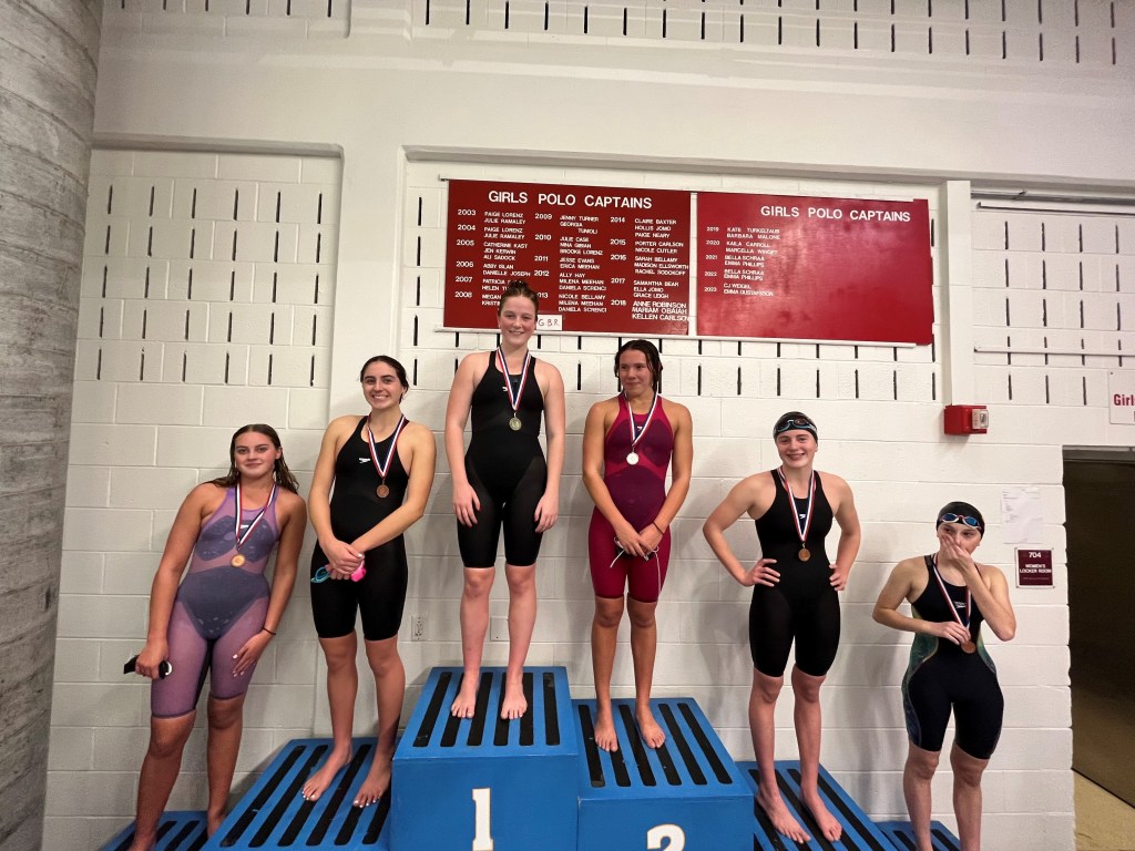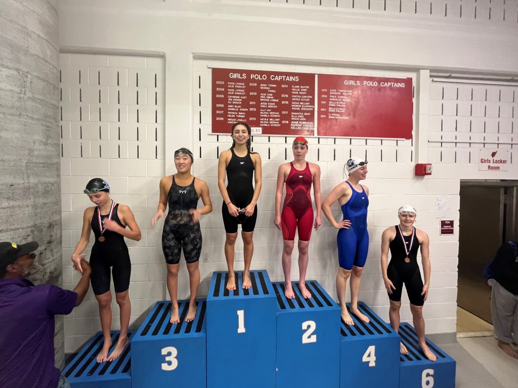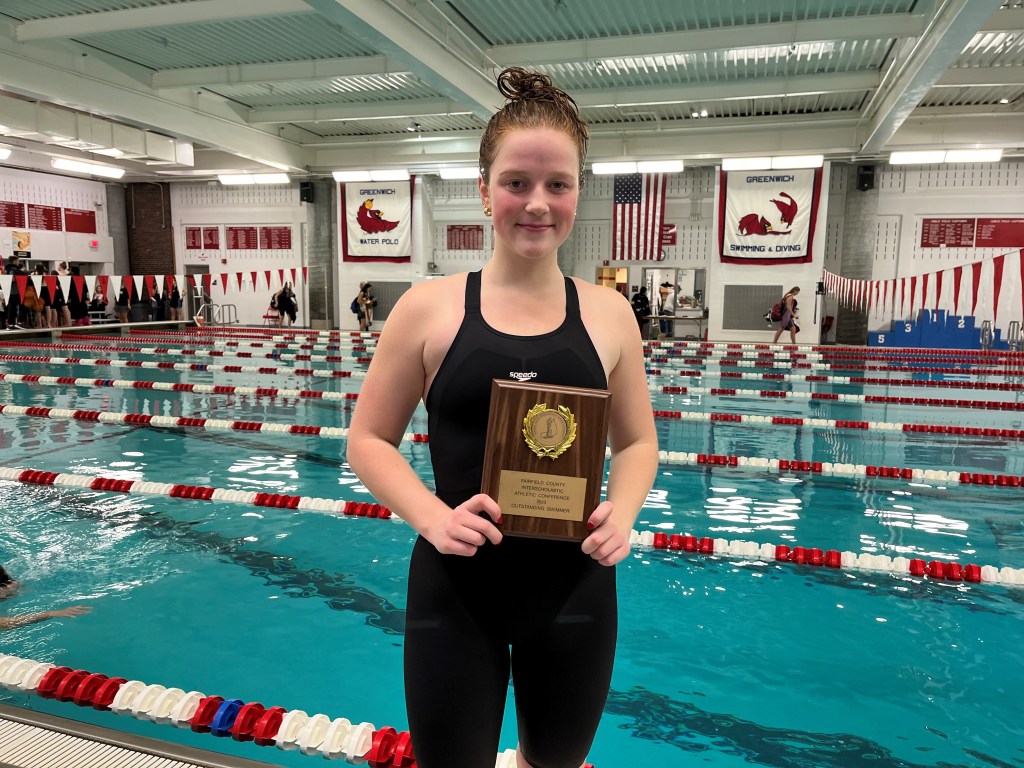 It certainly didn’t take long for Greenwich to make its mark in last night’s FCIAC final. The quartet of senior Payton Foster, senior Sydney Jee, junior Sena Bozkurt and junior Sofia Wang combined to win the 200-yard medley relay in an FCIAC championship meet record time of 1:44.50. Greenwich set the previous record in the event in 2021 in 1:45.23 – Bozkurt and Wang also swam on that relay squad.