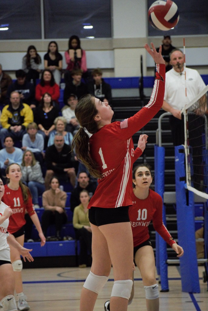 Junior Alina Sarkissian also propelled Greenwich in the hitting department, registering 15 kills, six digs, five blocks and two aces against the Nighthawks.
