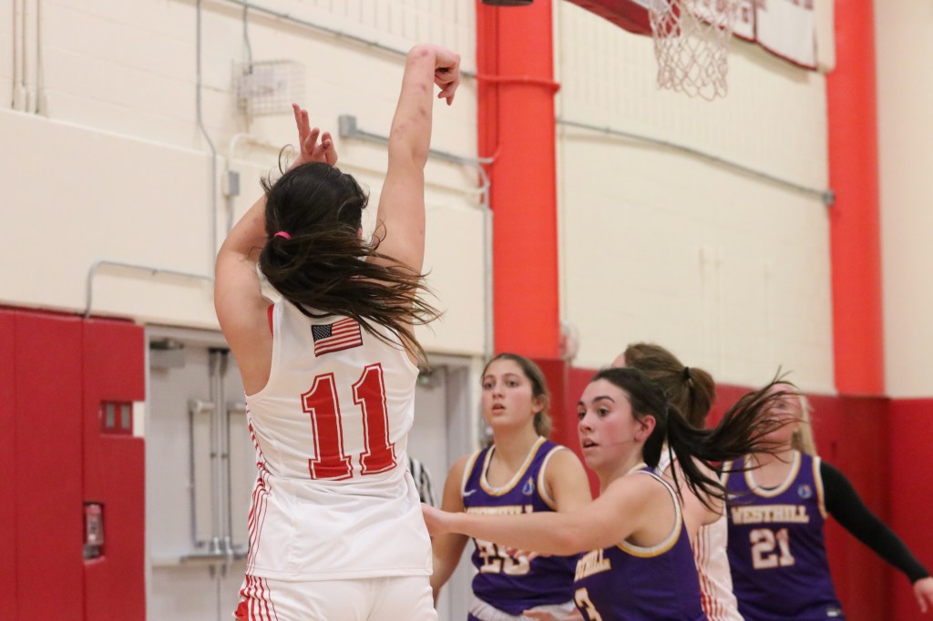Sophomore Emma Lange scored six Westhill’s eight first half points. Lange made two 3-pointers for her six first-half points. Once the third quarter commenced, Greenwich quickly added on to its commanding lead.