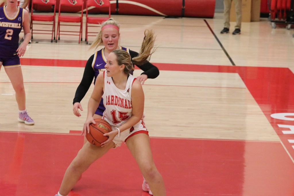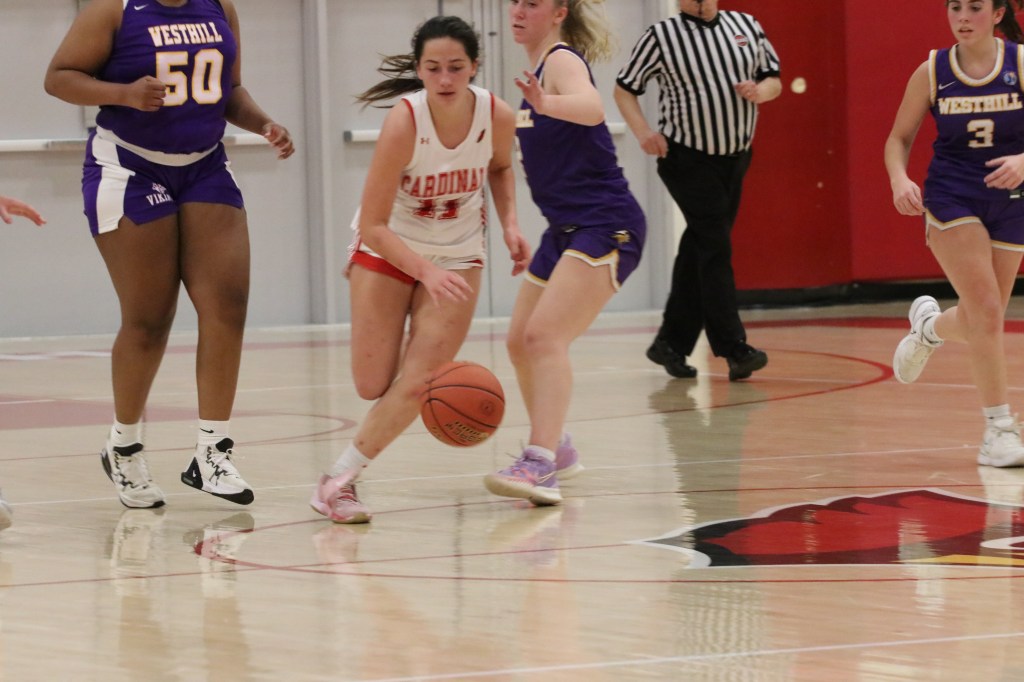Receiving six first-half points from Juliette Pelham and four points apiece during the first two quarters of play from senior forward/center Riana Xhekaj, senior point guard Ayanna Davenport and sophomore guard Anna Lenschow, the Cardinals held a 14-2 lead on the Vikings after the first quarter and were ahead, 26-8, heading into halftime.