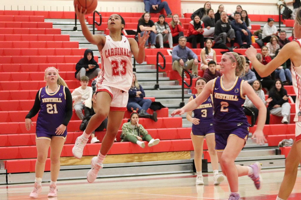 Layups by Davenport and junior forward Kate Baxendale gave the Cards a 4-0 lead on the Vikings with 4:25 to go in the opening quarter. Geiger swished a jump shot at the 3:50 mark, making it 6-0. Westhill’s first points of the game came from leading scorer Cayla Meek, a guard. Her basket cut Greenwich’s lead to 6-2 with 3:30 remaining in the first quarter – the closest the Vikings would come against the Cardinals on this night.