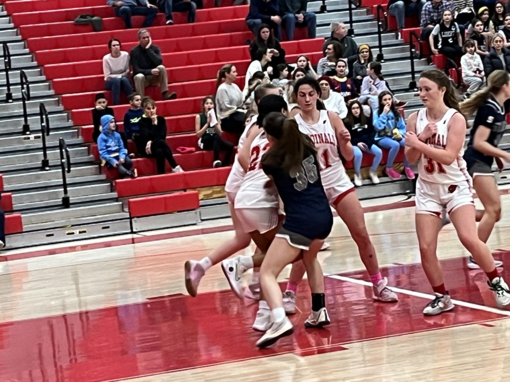 Senior guard/tri-captain Megan Geiger was Greenwich’s top scorer with 10 points and teammate Madi Utzinger, a sophomore guard, added nine points. The Cardinals trailed 9-4 at halftime, 26-20 at halftime and struggled with its perimeter shooting throughout this FCIAC game.