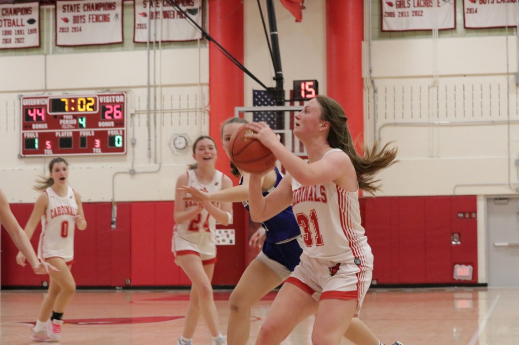 Lenschow’s 3-point shot in the final seconds of the third quarter, gave Greenwich a comfortable 44-26 lead heading into the final quarter.