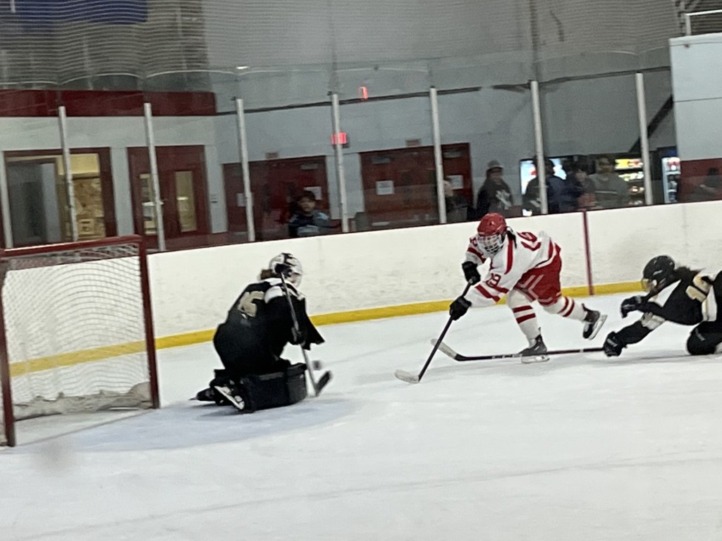 Freshman forward Aliza Torop got loose on a breakaway, skated down the right wing, then put a nice move on Trumbull/St. Joseph sophomore Lucy Kimberly, before converting a shot from close in, evening the score at 1-1.