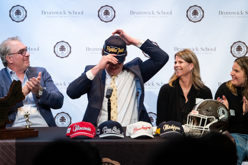 The recipient of more than several dozen offers to play football at the Division I level, many of which are Power Five conference schools, Brunswick School junior Matty Augustine decided that it was time to announce his decision as to where he was going to continue his academic/athletic career.