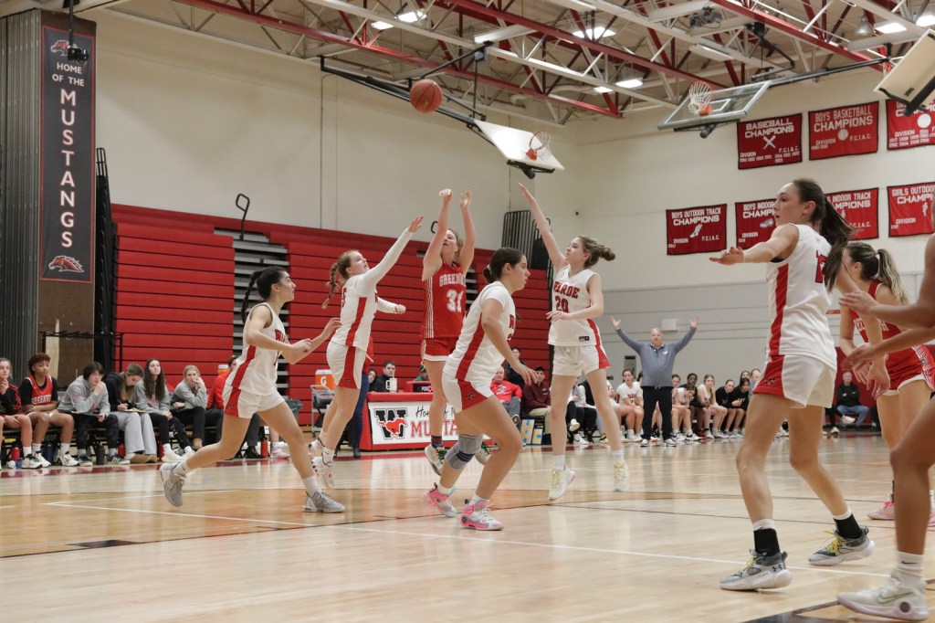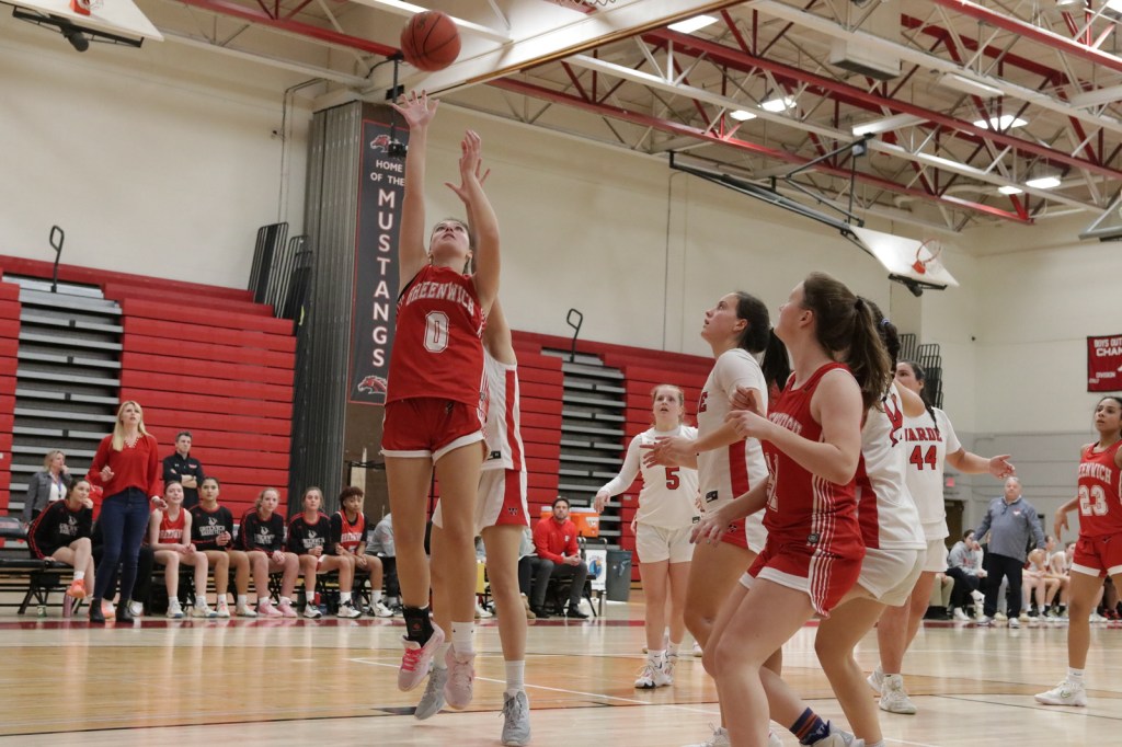Gulbin swished a 3-point shot, opening the Mustangs advantage to 20-9, yet a 7-0 Greenwich run closed the gap to 20-16. A baseline jumper by Lenschow, who also scored on a runner in the lane two possessions previously, cut the Cards’ deficit to just four points.