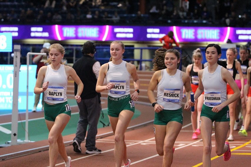 Running in the 4xMile relay was a new event for the Greenwich athletes, who have produced an exceptional winter indoor track season in numerous events. The 4xMile relay is an event in which teams comprise four runners who each run one-mile. Friedman ran the first leg of the race for GHS, followed by Resnick and Ellie Daplyn. The race was anchored by Esme Daplyn.