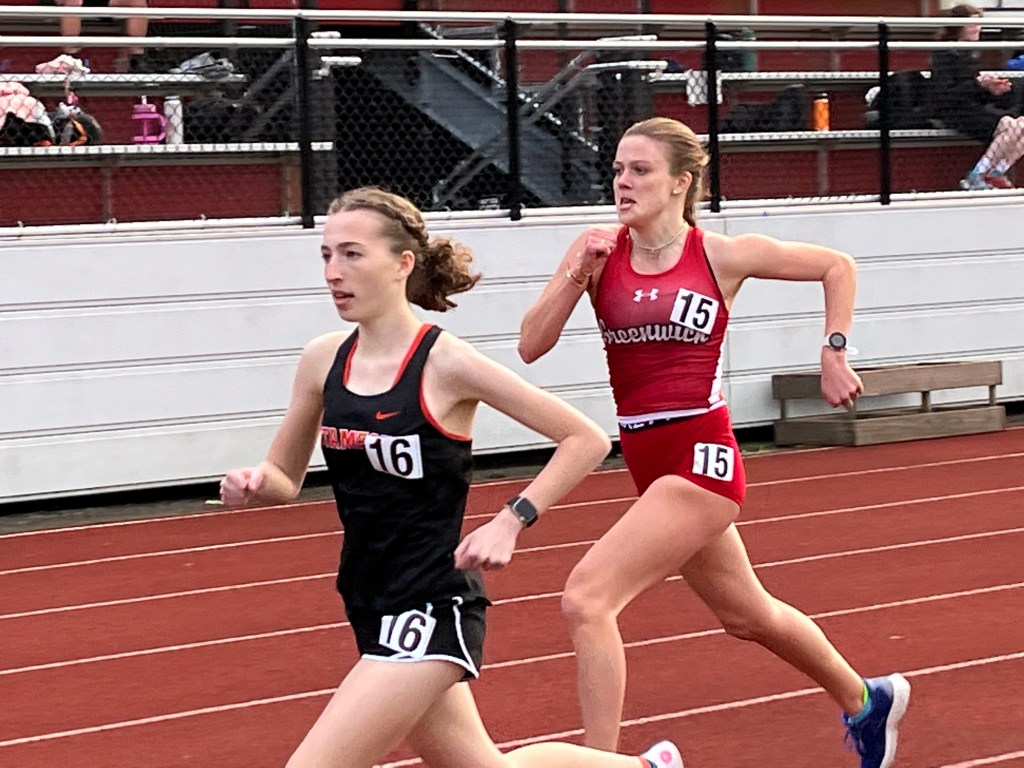 Sophomore Margaret McCooe had an outstanding meet against the Black Knights. McCooe posted a first-place finish in the 800-meter race with a personal-record time of 2:25.52. Friedman also had a strong finish, taking second in 2:28.35, PR) and Cardinals teammate Orla Muir, a sophomore, had a third-place finish (2:37.89).