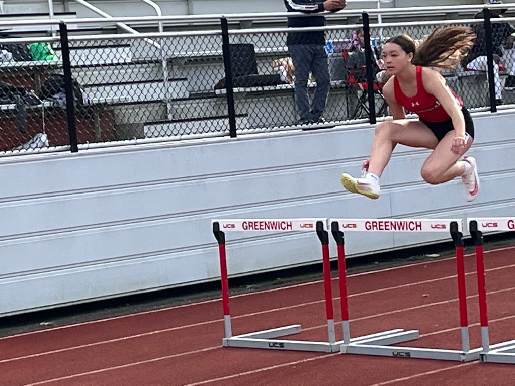 In Monday’s meet verus Stamford, junior Sophie Riche won three events for the Cardinals. Riche crossed the finish line first in the 100-meter hurdles, registering a time of 18.05 seconds – a personal-record time. Greenwich teammate Victoria Sullivan placed second (20.99, personal-record time) and Cardinals junior Grace LaFeve was third (22.47).