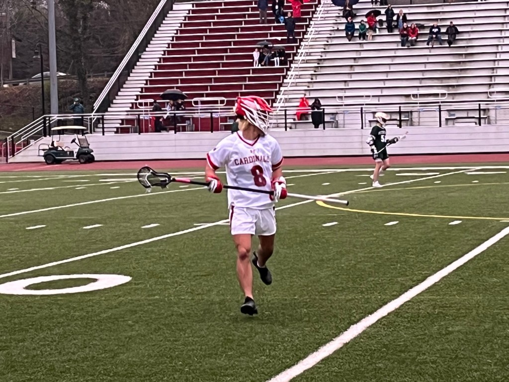 This past Thursday’s game against Notre Dame-West Haven marked the home-opener of the Greenwich High School boys lacrosse team’s 2024 season and the soaring Cardinals promptly went on a scoring surge at its home field.