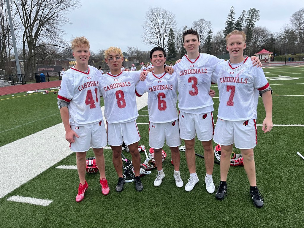 In Greenwich’s close 8-6 road loss to Wilton today, Zeller scored three goals, Burki scored twice and Duda had a goal. The Cardinals trailed 8-6 after three quarters and neither team tallied during the final quarter.