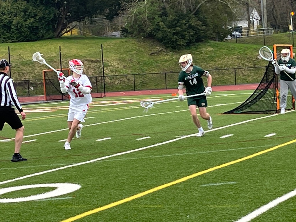 Senior attack/captain Colin Zeller scored a game-high seven goals, attackman Conrad Burki recorded four goals and junior attack Mikey Brescia registered three goals and two assists for Greenwich in its 21-11 win over Notre Dame-West Haven at Cardinal Stadium. The victory was the third straight for Greenwich, which upped its record to 3-1 heading into today’s road game against FCIAC foe Wilton.
