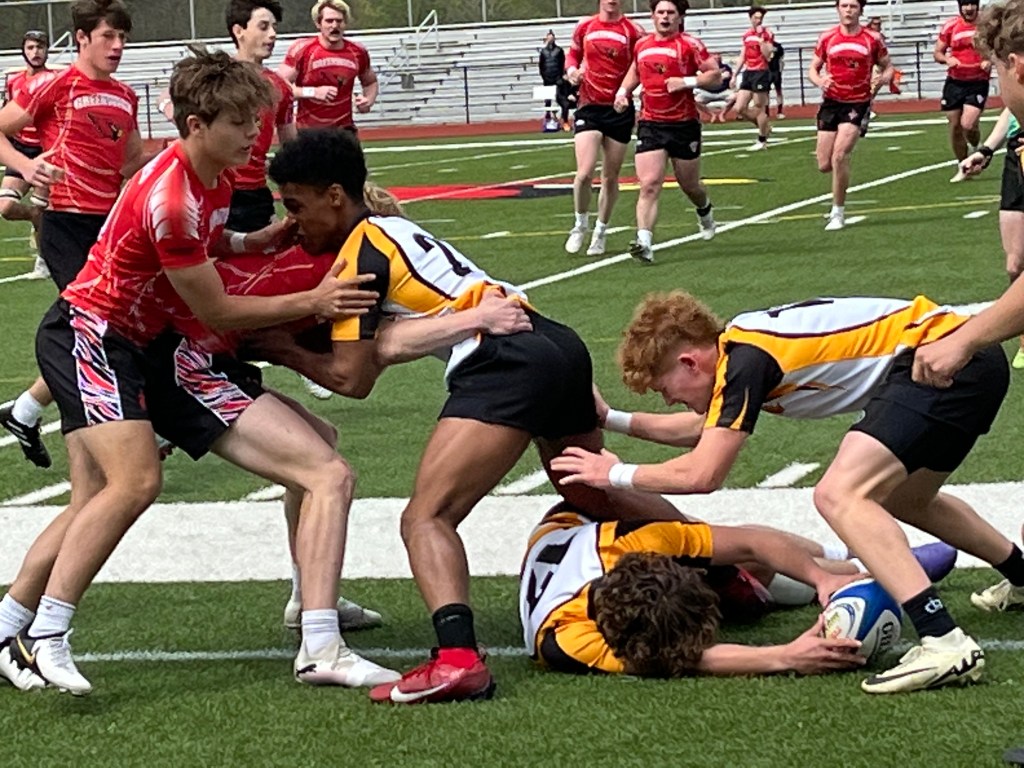 A try by Aspetuck Valley cut Greenwich’s lead to 10-5, but Ignacio Piccione extended the Cardinals’ edge. Piccione reached the try zone off a kickoff by Benjamin Gonzalez Lobo, putting GHS in front, 15-5 with 4:40 left in the opening half.