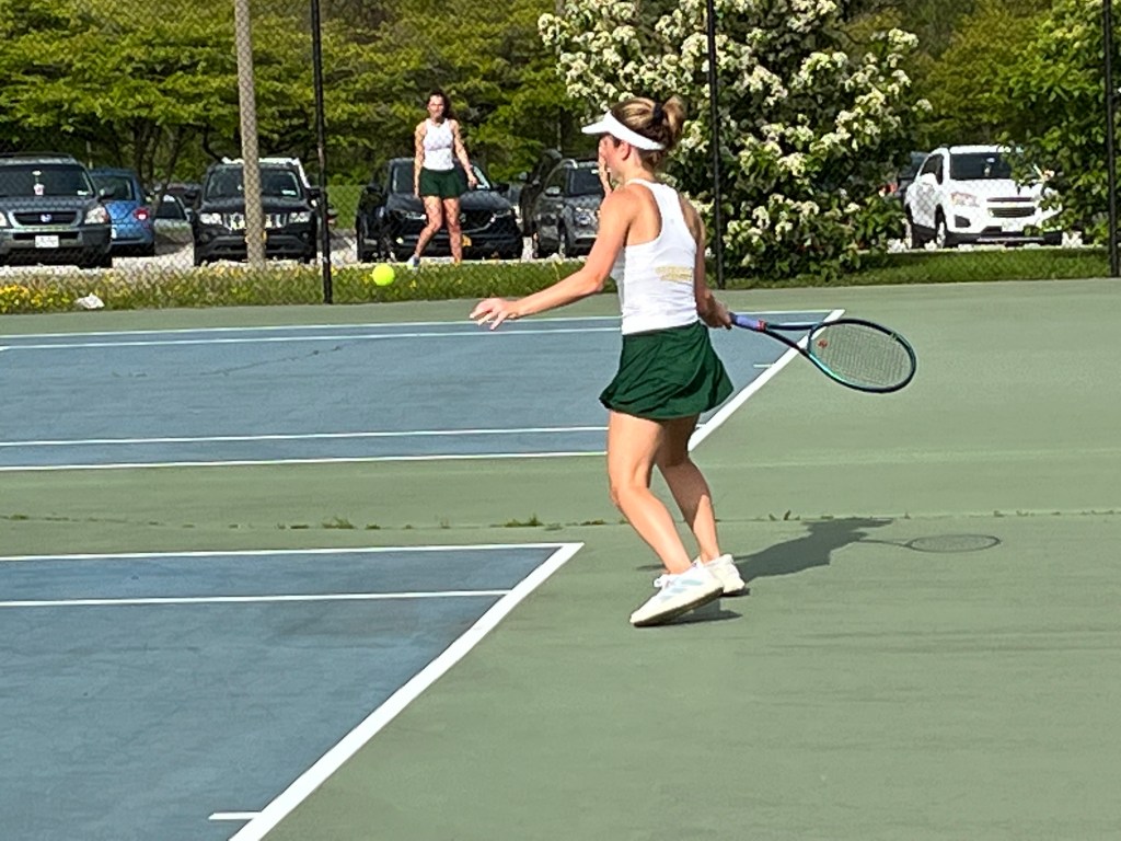 The No. 1 doubles team of Elsa Burgess and Ella Loehnis showed their experience and stellar teamwork on their way to defeating Rye Country Day’s Liz Kavanaugh/Kaitlyn Wong, 6-1, 6-0.