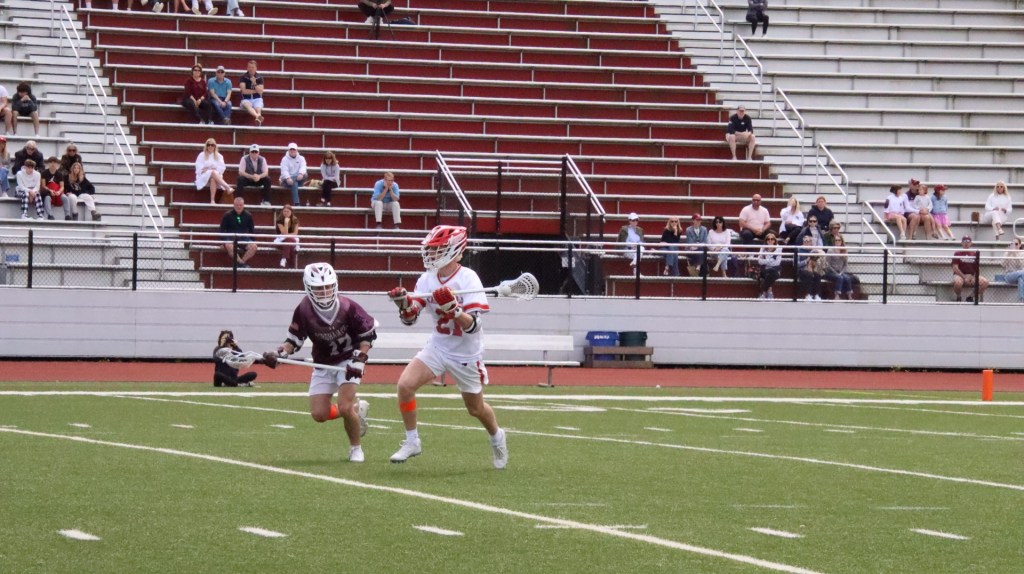 Lane Critchell was perfect on faceoffs for the Cards, winning all 11 he took, while junior teammate Dylan Botoff was 5 for 6 on faceoffs.