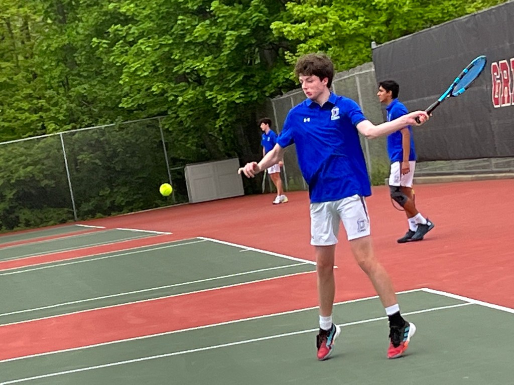 In the No. 1 singles match, freshman Kai Collins of Darien won his match against GHS sophomore Volodymyr Dombrovskyi 7-5, 2-0 (Dombrovskyi retired in the second set).