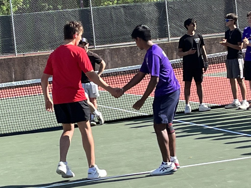 At No. 1 doubles, senior Harrison Wolfe and junior Rohan Mittal continued their excellence. Mittal/Wolfe won their match against Blue Wave juniors Dallas Barton/Oscar White, 6-0, 6-1.