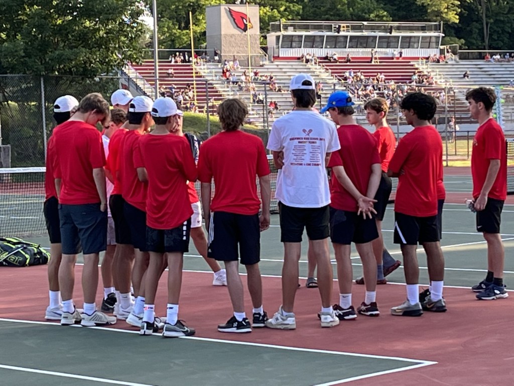For Greenwich, the match clinching win came at second doubles, where senior Bruce Lunder and Daniel Lee were victorious against senior Greg Garabet and Liam Tomaszewski. Lee and Lunder posted a hard-fought 7-5, 7-5 win against their Darien foe, giving the Cardinals a 4-1 lead and a berth in the Class LL championship match.