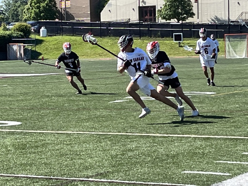 In the CIAC Class LL semifinals, New Canaan (16-5) was defeated by second-seeded rival Darien, 9-7, at Greenwich High School.