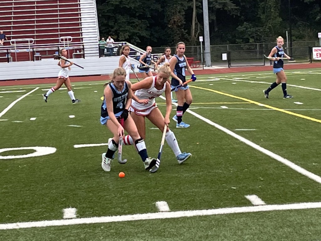 Time had expired, but Friday’s game between FCIAC field hockey rivals Greenwich High School and Wilton was prolonged due to the completion of a Cardinals penalty corner, which GHS was determined to capitalize on.