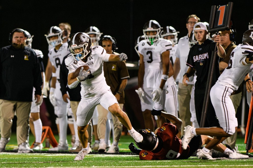 Brunswick School’s football team traveled upstate to Salisbury School for some Friday night lights action and returned home with a decisive and with a 34-14 victory over the Northeast Prep league rival Crimson Knights.