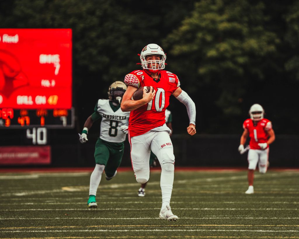 D’Angelo ran for two touchdowns and threw a scoring strike and Greenwich put forth another stellar defensive effort in coming back to defeat Bishop Hendricken, the No. 1-ranked team in Rhode Island, 21-20, at crowded Cardinal Stadium. Ranked No. 3 in the GameTimeCT Top 10 Football Poll, Greenwich raised its record to 3-0 with the comeback win in its 2024 home-opener.