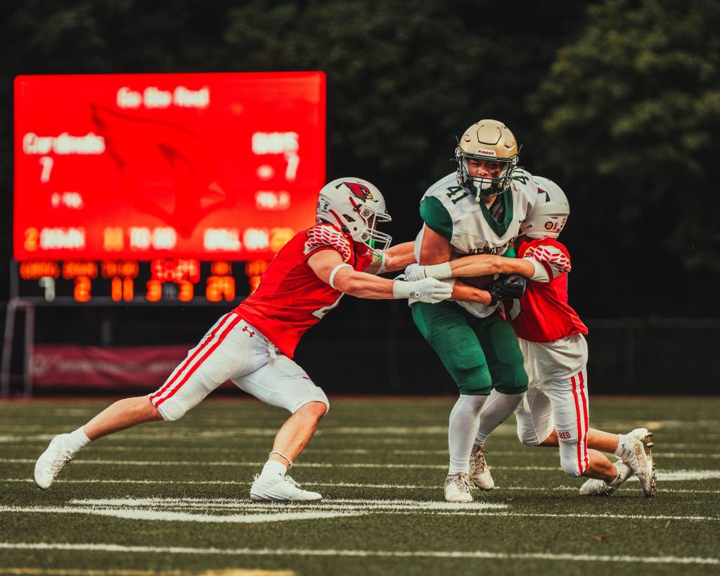 That score, a 17-yard touchdown run by D’Angelo, tied the game up and when senior Julian Ravina split the uprights with his point-after-attempt, the Cardinals held a 21-20 lead, which they maintained in the matchup’s final minute of action.