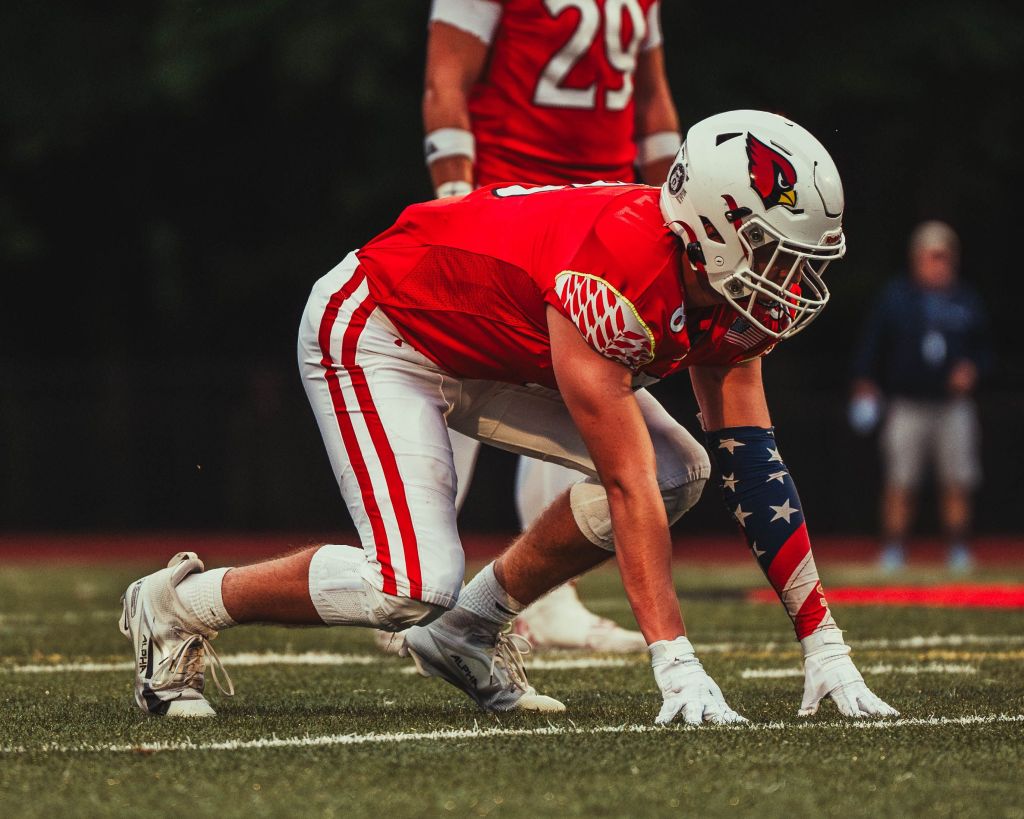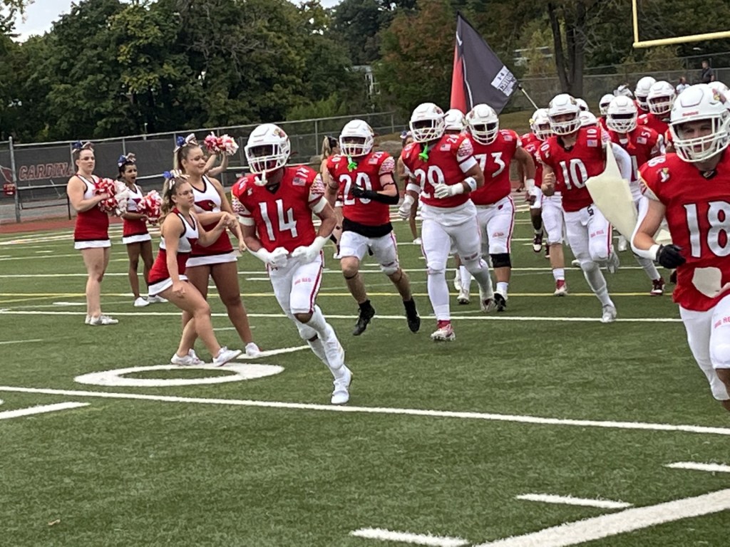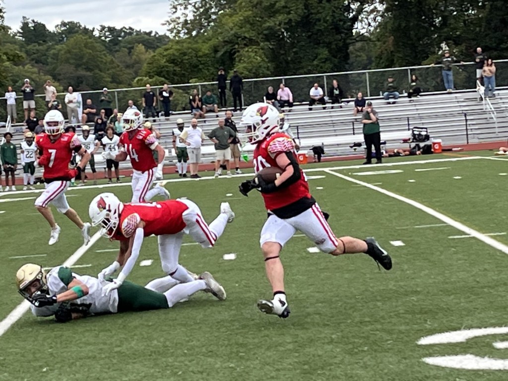 D’Angelo pass for 104 yards and added more than 100 rushing yards. For the game, the Cardinals’ rushing attack totaled 200 yards. Senior Peter Vomvolakis, junior Colin Falla, junior Frank Kingsley, junior Henry Wahl and junior Richie McMurray ignited the Cardinals’ ground game with their consistent blocking on the offensive line throughout.