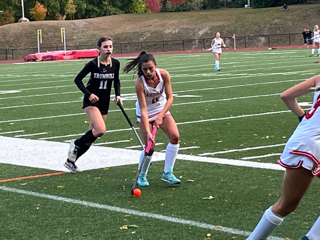 Thibeault got the Cardinals going offensively versus Trumbull, scoring off a penalty corner with 7:21 remaining in the first quarter. Senior Lexie Carino, who helped pace Greenwich’s defense, assisted on the goal with a well-placed insert pass.